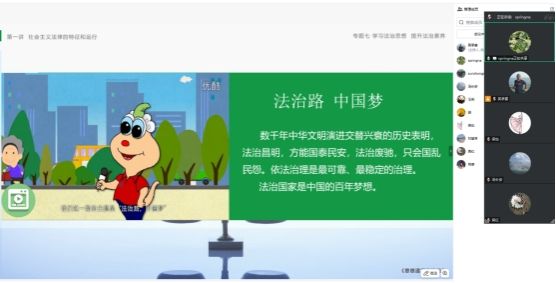 徐声慧分享了教材第六章第二节《坚持全面依法治国》。徐声慧从全面依法治国的根本遵循、坚持走中国特色社会主义法治道路、建设法治中国三个方面分析了坚持全面依法治国的指导思想、基本道路和具体实践要求。在全面依法治国的根本遵循中,详细介绍了习近平法治思想的形成过程、意义和主要内容。在坚持中国特色社会主义法治道路中,详细阐释了必须坚持中国共产党的领导、坚持人民主体地位、坚持法律面前人人平等、坚持依法治国和以德治国相结合、坚持从中国实际出发六条原则。在建设法治中国实践中,深入展示了一要建设社会主义法治体系,二要坚持依法治国、依法执政、依法行政共同推进、坚持法治国家、法治政府、法治社会一体建设,三要坚持全面推进科学立法、严格执法、公正司法、全民守法。